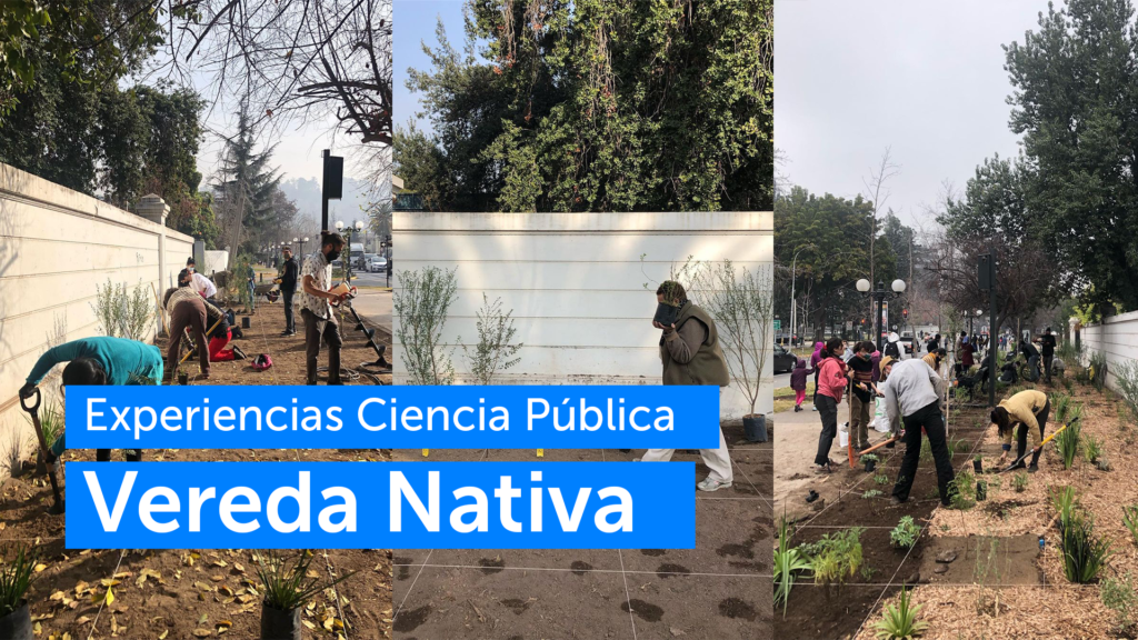 “Vereda Nativa” se desarrolló con el financiamiento del Concurso Nacional Ciencia Pública . Para esa instancia, el proyecto recuperó la vereda de la esquina de la Av. Pedro de Valdivia con la Av. Santa María en conjunto con la agrupación vecinal del barrio Pedro de Valdivia Norte, quienes colaboraron en las distintas jornadas de trabajo para el cultivo y cuidado de estas plantas nativas que se estaban integrando al lugar.