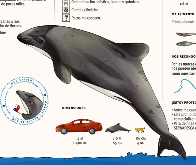 El proyecto «Navega con el delfín chileno» busca divulgar el conocimiento científico sobre el delfín chileno y su hábitat a niños de cuarto y quinto básico. Utiliza cuentos multimodales con elementos visuales, auditivos y verbales, además de guías de actividades interdisciplinarias. Los contenidos se basan en investigaciones sobre pequeños cetáceos de la Isla de Chiloé y promueven actitudes positivas hacia la ciencia y el medio ambiente.